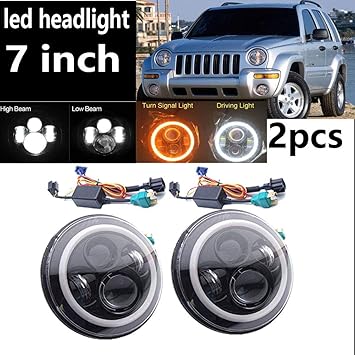 7 Inch Led Round Halo Angel Eyes Headlights H4 H13 High Low Beam Headlamp Amber Turn Signal Halo Conversion Kit For Jeep Patriot Liberty Amazon Co Uk Car Motorbike