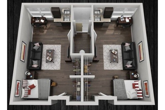 Your home away from home will feature new wood-like flooring new cabinets a new bathroom new stainless steel mini fridge all new furniture including a 42. Your home away from home will feature new wood-like flooring new cabinets a new bathroom new stainless steel mini fridge all new furniture including a 42. Choose to share a bathroom or get your own either way you always have a private bedroom and living space.